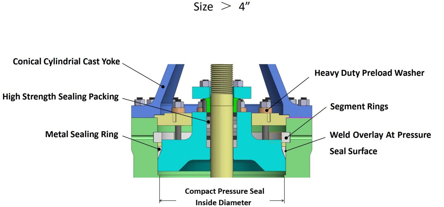 1. The design of Pressure Seal Gate Valve is specifically for high-pressure applications, therefore normally only available in pressure classes of 900# and above. These valves are unique because as their internal pressure increases, the body-bonnet joint seal improves.