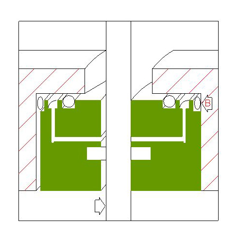 2.Upstream pressure forces?gate against?the PTFE?ring on the downstream seat. A double seal is established:PTFE-to-metal and meat-to-metal?O-ring(B) avoid any down-stream flow.